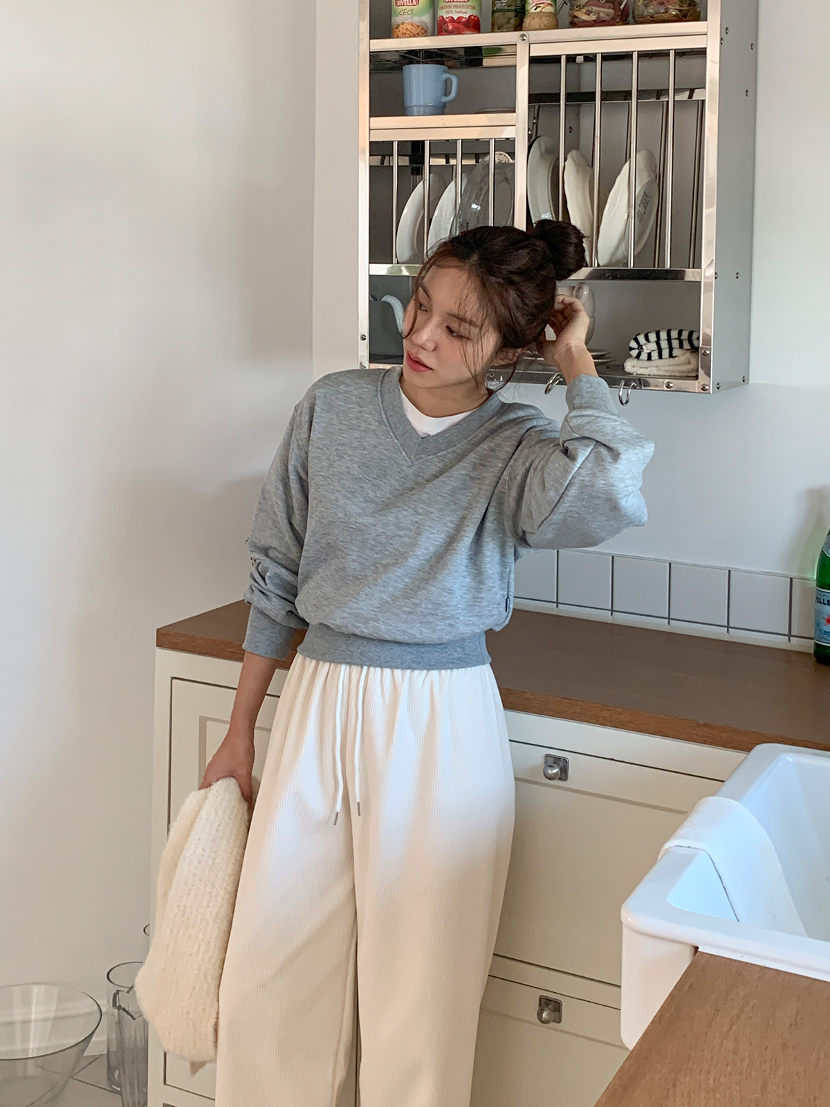 데일리룩으로 편하게 입기 좋은 브이넥 기모 맨투맨 추천해드려요~!